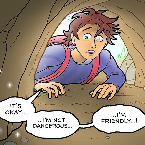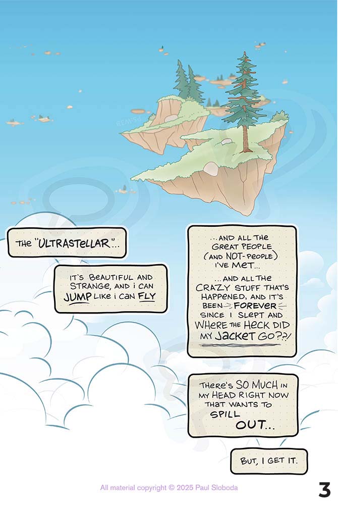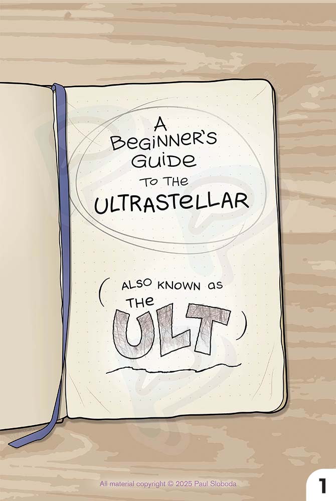 Ultrastellar is a kid-friendly full-color graphic novel. The story’s in progress, and the first 92 pages (plus bonus material) have been collected as ULTRASTELLAR, BOOK 1: ESCAPE.