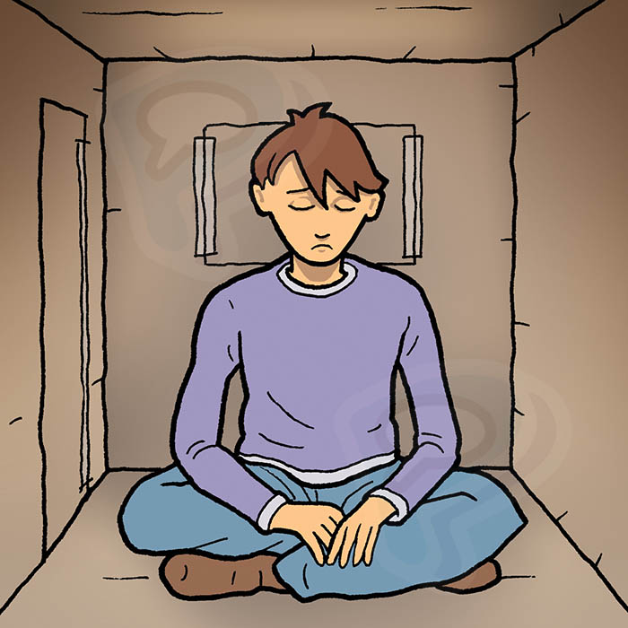 Surrounded by familiar comfort, Trevor meditates.